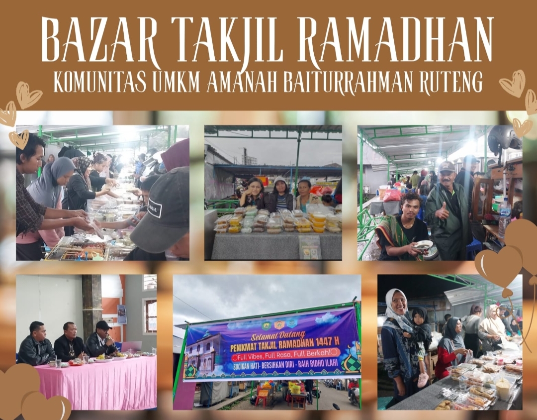 ISTANA NETIZEN.COM – Komunitas UMKM Amanah Baiturrahmah, binaan Takmir Masjid Besar Jihadul Ukhro, sukses menggelar Bazar Takjil Ramadhan 1447 H – 2026 M yang berlangsung di depan Masjid Jihadul Ukhro Ruteng. Kegiatan ini menjadi ruang pemberdayaan ekonomi masyarakat sekaligus simbol nyata toleransi di wilayah yang mayoritas penduduknya beragama Khatolik.